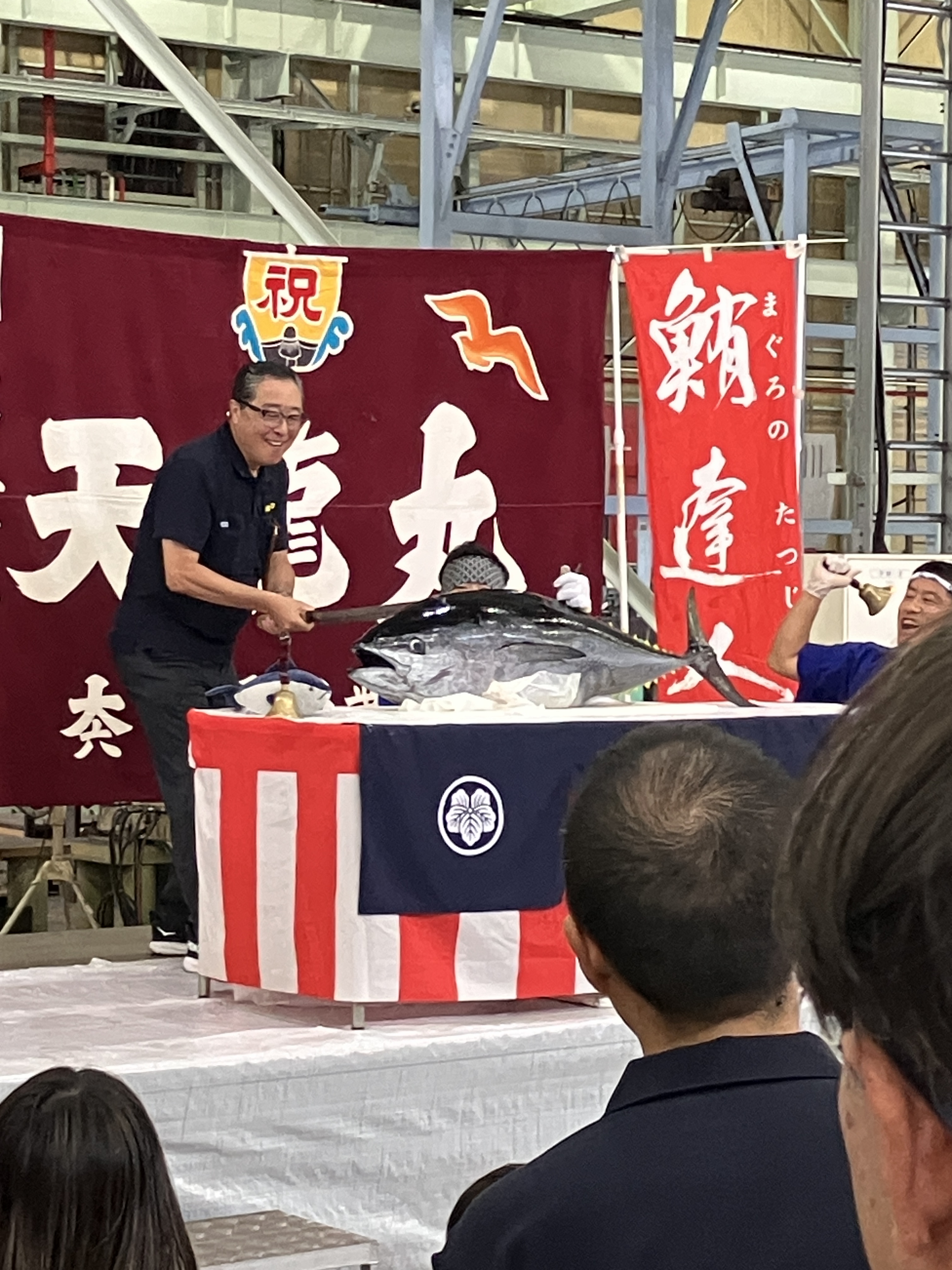 迫力ある入刀の瞬間に歓声が上がり、参加者の皆さんには中落ちの“ごしごし”体験もしていただきました。